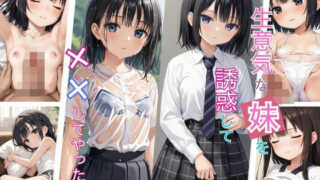 僕と妹には秘密がある。何の知識のない妹をついに目覚めさせてしまった。快楽の世界へ妹を連れていく・・・。内容貧乳/微乳/女子校生/処女/初体験/ロリ/中出し/正常位/騎乗位/バック/フェラ/キス/ちっぱい/くぱぁ/黒髪/制服/パンチラ/胸チラ妹/近親相姦/本編 96
