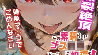 【ストーリー】サキュバスの淫夢サービスを注文したカズマ。お任せコースの相手はまさかのめぐ〇んだった!?たとえ、パーティーメンバーであっても容赦のないカズマ。一緒にお風呂に入ったり、おっぱいを堪能したりとやりたい放題…エスカレートする変態プレイにめぐ〇んは耐えられるか!?カズマXめぐ〇んの変態ラブストーリー開幕!※NTR無し※変態レベル高め【プレイ内容】混浴プレイ、くぱあ、おっぱい揉み揉み、中出しセックス、野外セックス、潮吹き、失禁放尿、アナル、調教、SM、アナルプラグ、フェラ、イラマ、アヘ顔オホ声セックス、搾乳【ページ数:全244P】本編:119Pテキスト無し:119Pあとがき。予告:2Pあとがき。予告テキスト無し:2P【ファイル形式:PNG(1600x2400pixel)】【おすすめな人】1:このすばでめぐ〇ん推し紳士の皆さま→作者はめぐ〇んの可愛さは至高だと思ってます!2:カズxめぐが好きな方→作者はカズxめぐのカップリングが大好物です2:調教系が好きな人→作者はめぐ〇んの快楽堕ちをおかずにご飯3膳イケます!【本書の特徴】1:基本、縦型かつ写真1枚1枚大きめで、縦型漫画のようにスマホでも読みやすい大きさと構成となっております。2:AIイラストを使用しておりますが、’読んで’抜くことにかなりこだわってます。(よくあるAIイラスト集のようなストーリーのないAI画像集とは違います)3:AIイラストのため、多少の矛盾(服装や周囲の環境)はご了承ください。4:読者の違和感がないようにキャラクターの性格などからセリフを考え抜いております。【本書について】この書籍は「AI」による「画像生成ソフト」を使用しております。(使用生成AIソフト:stablediffusion)本作はセリフや擬音などの編集を加えたAIイラストを主とした漫画です。(文章やシナリオ構成はすべて作者のオリジナルです。)AIイラストの特性上、矛盾した場面(服装や髪型・体型など)はありますが、かなりヌケるHなイラストですので、文章やあなたの妄想と合わせてお楽しみください。
