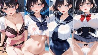 純愛エッチ小説を書きながら、悶々と頭に浮かんでくるとても物語には書けないマニアックな妄想が飽和状態(サチュレーション)に達してしまったので、AIイラストでそれを形にすることにしたという、しょうもないエピソードがサークル名の由来です。妄想サチュレーションです。初めての方ははじめまして。常連の方はいつもありがとうございます。本作は以前公開した「お母さんのお尻をひたすら楽しむCG集」のシリーズ的な作品となっておりまして、タイトルそのまま脱いだらすごい妹のお尻を楽しみ尽くすコンセプトのCG集となっております。容貌はおとなしめで、どちらかというと地味なイメージなのに、脱いだらとんでもないムチムチボディの持ち主で、学校中の夜のオカズとして毎夜毎夜スケベな生徒や先生たちの妄想の中でこれでもかと性的搾取の対象となっておりながら、本人はそれを自覚しつつ悪い気はしないながらもお兄ちゃん一筋という、ちょっと歪んだ性癖のお兄ちゃんにぶっ刺さるキャラクターを意識しました。そんな妹が、大好きなお兄ちゃんの求めに応じるまま、その地味顔からは想像もつかないデカケツをこれでもかと見せつけ、お兄ちゃんの欲望をそのまあるい双丘で受け止めてくれる痴態をぜひお楽しみください。なお本作は他ダウンロードサイトさまとの併売となりますので、ご購入の際はご注意ください。お品書きは以下の通り。基本的にはそれぞれのコスとシチュエーションで、バックショットからたっぷりとデカケツを鑑賞したあと、たまらずその真っ白なお尻に白い液体をぶっかけるという流れとなっております。1.@LivingRoom (50pics)リビングルームで、スポブラ&ミニスカ&ニーソという、活動的だけどエッチなカッコをした妹がパンツにつつまれたお尻を鑑賞させてくれます。パンツを脱いでもらった後はアナル目指して大量ぶっかけ!2.@BedRoom (50pics)大好きな兄ちゃんの部屋で、そろいのランジェリー&ガーターベルトというちょっと背伸びファッションでベッドにうつ伏せになる妹。パンツ越しのお尻を堪能した後はパンツをずらし、またもやその白い双丘にぶっかけ!3.@ClassRoom (50pics)休日の学校に忍び込み、誰もいない教室で制服姿の妹のお尻の鑑賞会です。お行儀悪く机にまたがる妹のパンツ越しのお尻を堪能した後は、床に膝立ちになってパンツをずらしたデカケツに大量ぶっかけ!4.@PoolSide (55pics)そのあとは学校のプールに向かい、ここでも妹のデカケツ観賞会。スク水やスク水+セーラー服、セーラー服+ブルマ、そしてスポブラ+ブルマなどの紳士向けコスで四つん這いになった妹のお尻を堪能したあとは、ブルマをずらしたお尻に白い液体をこれまた大量ぶっかけ! どんだけ出んだよ笑5.@BeachSide (55pics)海に行っても青い海や真っ白な砂浜、遠くの島など、そんなものは一切目に入らず、視線は妹の巨大なお尻にくぎ付け。いろんな柄のビキニに包まれたお尻を心ゆくまで堪能した後は、お約束どおり空に浮かぶクモにも負けないくらいに白い液体をこれまた真っ白な妹の双丘へとぶっかけます。6.@JapaneseSpa (57pics)それぞれの友達の家に泊まると両親に?をついて、二人してやってきた露天風呂付き温泉旅館。部屋付きの露天風呂で、なぜか体操服姿になってもらって、ブルマ越しのお尻をたっぷり観賞。ブルマを脱がせてその下にはいていた赤や金のTバックおパンツからはみ出るアナルを見ていたあなたは我慢できなくなり、やはり最後はくぱぁなお尻の穴に向かって、大量の白い液体をぶっかけるのでした。7.@ToyPlay (93pics)誰にもじゃまされない自宅で、オモチャを使って妹のお尻で遊びます。ディルドオナニーを鑑賞したり、アナルビーズを出し入れしたり、バイブレーターでイキまくる妹を鑑賞したり。これだけやりたい放題させてもらったからには、もうあなたもこれ以上の我慢は不可能です。8.@TimeToLove(86pics)というわけで、愛しあう時間の始まりです。至近距離で妹アナルをじっくりと観賞した後は矢も楯もたまらず妹の後ろの穴へと、ガチガチに反り返った肉棒を挿入! お尻の穴なら妊娠しなくていいから大丈夫だよねとばかり、けれども妹がいとおしすぎてケツ穴でいいから孕ませたいとばかり、背後から下から後ろから、力の限り肉棒を打ち付け、最後は今まで以上に大量の白い液体を、実妹の排泄孔へと注ぎこむのでした。基本的にはシリーズ前作の「お母さんのお尻をひたすら楽しむCG集」と共通した内容となっておりますが、キャラクターをお母さんから妹へとチェンジすることで、また違ったエロさを演出できたのではないかなと自負しております。作者は三次元も多少はたしなむのですが、AVなんかでも人気シリーズでは、女優さんだけ入れ替えて内容はほとんど同一というケースが結構ありまして、二番煎じで飽きるだろうと思いきや、女優さんが変わっただけで全く別物になるといいますか、飽きることなく楽しむことができまして、本作でもそういうところ