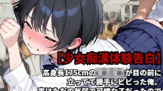 【痴●に気持ちよくさせられていることにパニック状態になった少女が、勇気を振り絞って痴●を睨みつけるが・・・】電車内で痴●に気持ちよくさせられているという状況に、少女は軽いパニック状態になっているようだった。大胆にも、強引に体を反転させたのだ。思いもよらない動きに、俺はスカート越しに掴んでいたパンティーから手を離した。少女は、俺を見上げ、睨めつけてきた。これが普通の〇〇〇〇であれば、俺も騒がれると思ってビックリするところだろう。しかし、この子は、生まれて初めて痴●にあった新入生なのだ。その顔は恥ずかしさで真っ赤になっており、瞳には涙が溢れ、唇が震えていた。最後の勇気を振り絞って睨めつけていることは明白だった。(こんな怖くない睨みとかあるんだな・・・、かわいい・・・)俺は焦るどころか、逆に冷静になっていた。【スカートを捲る動作を見せると、反抗の心は失われ、恐怖で身動きが取れなくなってしまう】指先でスカートの裾をつまみ、ゆっくりと落ちあげる動作を見せつける。少女の身体がビクンと跳ねた。そして、ゆっくりと俺の方を向く。そこにはもう、先ほどの反抗的な表情はなかった。恐怖に怯えた可愛らしい少女がいるだけだった。(・・・お願いします・・・、許してください・・・)その瞳は、許しを求めていた。俺は一瞬考えるそぶりを見せたあと、軽い笑顔を浮かべた。そして、指先のスカートを離してやった。少女は一瞬下を向いて確認した後、ふたたび俺を見上げた。そして、(ありがとうございます・・・、ありがとうございます・・・)といった感じで、何回か会釈した。一方的に痴●をしているだけなのに、ちょっと優しくしたらお礼を述べられることのおかしさに、俺は思わず失笑してしまった。【痴●の執拗な焦らしプレイによって、楽になってしまいたいと思ってしまう少女】焦れるような弱く甘い快感が、少しずつ薄く積もるように、少女の身体を切なくさせていく。その感覚に耐えるように、下半身を艶めかしくよじった。(あああ・・・、つらいよお・・・、もういっそのこと・・・)少女が楽になりたがっているのは、手に取るようにわかった。パンティーのサイド部分に触れていた人差し指の側面を使って、大陰唇を軽く押し込んでみる。「くふうううううううん」クリトリスに圧迫が伝わったのだろう。少女の口から吐息がもれた。パンティーの上からでも、すでに少女のマンコに愛液が満ちていることがわかった。若干緩めの綿の下着が、大陰唇に張り付いているようだった。(濡れてることが・・・、バレちゃう・・・)少女の顔は羞恥で更に赤くなっていた。中指を脚の付け根に押し当てながら、人差し指でパンティーの股のサイド部分に指をひっかけた。わずかに濡れそぼった毛の感触を感じる。(ああ・・・、こんな〇〇っぽい子でも、ちゃんと大人になりつつあるんだ・・・)新入生を狙った痴●をしていて、本当によかったと感じる瞬間だった。【自ら痴●の指を気持ちいい部分に導き、触って欲しいとおねだりしてしまう処女】尻穴にギュッギュッと力を入れ、圧力が加えられる度ににじみ出る快感に耐えているようだった。(気持ちいい・・・、気持ちいい・・・、でも・・・)だらしなく涎を垂らしながら、モノ欲しそうな目で少女が見つめてくる。(これじゃイケないよお・・・もっと激しくしてください・・・)大陰唇のぽってりした肉を介しての間接的な刺激では、絶頂を迎えられないようだった。むしろ、じわじわとした痺れるような快感が、彼女の身体を更に切なくさせているようだった。少女はゆっくりと左手をおろすと、マンコをなでている俺の指に手を添えてきた。そして、俺の指先をクリトリスの位置に誘導する。(ここを・・・、触ってください)潤んだ瞳と切実な表情で、俺を見つめてきた。(やれやれ・・・、しょうがない子だなあ)上から目線で苦笑いをした。そして、包皮の上からやさしくクリトリスに触れた。【気持ちよくさせてもらったお礼として、射精の手伝いを強要される少女】「あれだけ気持ちよくしてもらって、自分だけズルいとか思わないの?」俺がそう言うと、「どうかしてたんです・・・、忘れてください・・・、お願いします・・・」懸命にチンコを擦りながら、泣き出してしまった。「セックスもだめ、素股もだめ、フェラチオもだめ、とか、俺のことをバカにしてる?」責めたてるように告げると、少女は押し黙ってしまった。スカートごしにチンコを握る手がわずかに震えていた。その仕草に興奮した俺は、一気に射精感がこみ上げてきた。「もうすぐ出そうだ、スカートに出すぞ!!」俺がそう言うと、「これから入学式なんです・・・、外に出してください・・・」少女が弱弱しく懇願してきた。※クレジット等クレジット表記:【声の出演】大樹小夜/SAYOCGにはAIを利用しております。あくまでもCGは副次的な位置づけであり、文章がメインの作品となっており