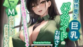 【ストーリー】修学旅行。自転車に乗るのが苦手な俺は、みんなと別行動でバスで移動していた。バスの中には、運転手さんとバスガイドさんと俺だけ。バスガイドさんは運動音痴な俺には興味なさそうにあくびをしている。運転手さんは運転に集中……。安全運転であるのはありがたいことだ。しばらくして、暇そうなバスガイドさんが俺にちょっかいを出してきた。バスの車内で俺の体をもてあそんで……。俺には彼女がいるというのに!【トラックリスト】・バスガイドの余計な仕事(手コキ、フェラ、ごっくん)8分40秒・不良のバスガイドさん(乳首責め、手コキ)5分01秒・バスガイドさんのつまみぐい(正常位、キス、連続中出し)9分14秒【キャラクター紹介】◇名前 小笠原 三星(おがさわら みほし)・年齢25歳、身長164cm、体重48kg Gカップ・スリーサイズ:B91?W62?H90バスガイドのお姉さん。2年前、子供のころからあこがれだったバスガイドに転職した。前職はケーキ屋さんの販売職。学生のころはお花屋さんでバイトしていた。一度きりの人生なので、子供のころに憧れていた職業を全部やってみよう!と考えている。バスガイドに転職したものの、コロナ禍でバス旅行の需要は低下。おまけにバス車内の掃除・アルコール消毒・スケジュール管理などの業務も加わり、「この仕事、思っていたのとは違うな」と感じ始めている。もっと華やかだと思っていた。でも、仕事は面白くない部分も含めて仕事だと思っているので、特に不満はない。子供の頃にあこがれた職業であっても、仕事は仕事と割り切ってやれる。結構飽きっぽいので、彼氏が長続きしたことはない。今は彼氏がおらず、合コンにときどき参加している。バスガイドの職業は合コンで人気があり、毎回お持ち帰りされているそうだが、付き合うには至っていない。たまに性欲の強そうな年下の子にちょっかいかけては、一度きりの関係を楽しんでいる。【製作スタッフ紹介】◇シナリオ:ナンギン◆イラスト:巨乳大好き屋□担当声優:豊川ゆき【出演作品】◇巨乳大好き屋、寝取り寝取られ人妻ボイスクールで無表情な銀髪人妻全裸家政婦の全肯定あまあまご奉仕〜疲れたアナタに何でもしてくれる優しいNTR性活〜甥のクリスマスプレゼントに弟を用意したい優しい叔父さんが爆乳ママが孕むまで種付けを頑張る話爆乳義母は息子の性処理をしたい母乳配りのウシ乳お姉さんおとなりの天使な北欧系人妻の荷運びを手伝ったお礼に、旦那も未使用のベッドで濃厚中出しセックスしてもらいました巨乳でスタイル抜群な職場の先輩が何故か陰キャ後輩の僕とあまあまセックスをしたがる理由爆乳叔母さんと真夏の田舎でラブあま同居性活〜何もやることが無かったので馬鹿みたいにセックスし続けた〜◆アナル巨尻大好き屋エルフのくせに巨尻すぎて夫に捨てられそうなので濃厚精子で種付け代行してもいいですか?ドスケベ巨乳人妻の秘密のデリヘル勤務〜デカ尻に生挿入したら簡単に寝取ってしまった話〜