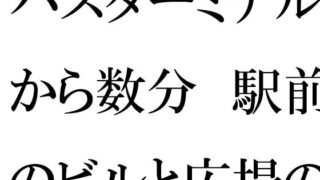 3P・4P 【d_549426】バスターミナルから数分 駅前のビルと広場の森とファミレス