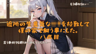 僕はどうしてもこの社会に馴染む事が出来なかった…社会から離脱した僕は近所から冷たい目で見られるような日々が続いていた…ある日、外に出かけると近所に住む女子校生が僕に聞こえるようにこう言った…女子校生「仕事もしないで何普通に生きてんの笑」 「この世のゴミ、底辺じゃん笑」それを聞いた瞬間、頭の中で何かが弾けて、気が付いたら僕はその少女を拉致して自分の家に連れて帰ってきていた。僕「社会に出た事もない○キが、、、僕が社会の厳しさを教えてあげるよ、、、」ーーーーーーーーーーーーーーーーーーーーーーーーーーーーーーーーーーーーーーーー人生に挫折してしまった青年が女子校生を拉致・監禁し飼育を行っていく作品となってます。現実では出来ないシチュエーションをご用意しました。お楽しみいただけましたら幸いでございます。ぜひ主人公になったつもりで、徐々に変化していく女子校生をお楽しみください。■イラストの内訳1.飼育STEP1【27枚】2.飼育STEP2【3枚】3.飼育STEP3【40枚】4.飼育STEP4【45枚】5.飼育STEP5【80枚】6.飼育STEP6【101枚】ファイル形式 PNG 全296枚■注意事項◆本作登場する人物は全て童顔で可愛い18歳以上の女の子です。◆本作はStable Diffusion用いて生成されたAI作品です。◆本番行為はありません。◆こちらの作品はAI生成画像です。手足指などが乱れている場合がございます。制服・パンチラ・女子校生・監禁・拘束・おっぱい・生挿入