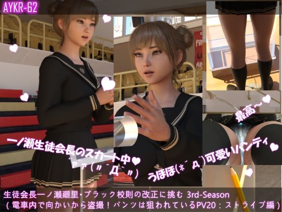 <3DCGによるシチュエーションムービーです。動画1本> スカートの短すぎる廻里。全校集会での演説の時に放送部のスケベ男子学生によるスカート内逆さ撮り盗撮の餌食になってしまったようです。