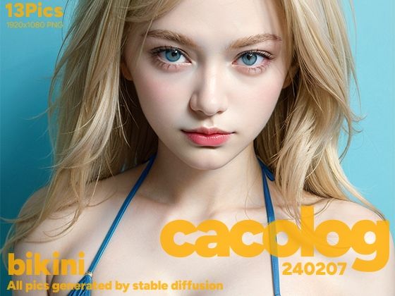 AI 生成の着衣写真集です。ヌードなどのアダルト要素はありません。 ビキニ、金髪、白人をテーマにした13枚です。 内容:1920×1080 可逆圧縮高画質 PNG 13枚 ※全ての画像は AI で生成し、レタッチ処理されています。 ※生成 AI は Stable Diffusion を使用しています。 ※登場する全てのモデルは18歳以上成人です。