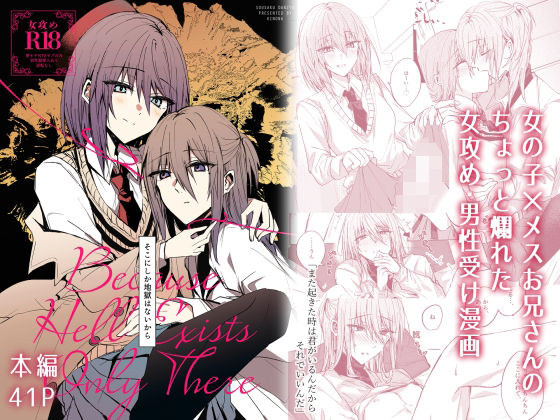 体が繋がってても、結局、触れ合えないね。 幼少期に家族からの愛を知らずに育った柳月。 一見明るく振る舞うも、誰にも話せない過去と心に孤独を抱える環。 幼少期に傷ついた過去を持つ二人が付き合い、同棲の前準備を行い始めるが、 とある日、柳月は環が見知らぬ男性に●●される悪夢を見て……。 な導入ですが実態は8割くらいすけべシーンな創作男女の男性受け/女攻め成人向け漫画本です。 成人男性のメスお兄さんが年下の女の子に絶対勝てない完全女性上位のすけべが読みたすぎて自分で作りました。 脳内本編の続編を本にする変則的な形になっていますが、 メンタルよわよわメスお兄さんと色々事情がありそうな年下の女の子がイチャラブすけべしてるだけなので、 難しいことは考えず読めると…思います!(脳内本編は今後同人漫画として制作して頒布・配信予定です) 本作には以下の描写があります。 ・女攻め、逆転なし、夢オチNTRモブによる男性器挿入のみ有り(お兄さんは女の子に挿入しません) ・女の子が装着するペニスバンドによるメスお兄さんへの挿入、逆アナル ・女→男、男→女(口に含むのはペニスバンド)のフェラ ・女の子→お兄さんへのアナル指入れ ・女装 総ページ46P、本文41P、おまけの電子ペーパーなど付属(ささやかです)。 ▽長めのサンプル(pixiv)