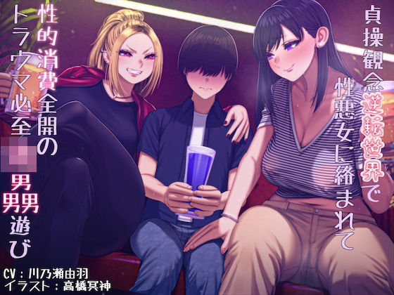 ——-トラック一覧———- 【1.「あなた」という獲物】—–3:41 旅行中に道に迷ってしまったあなた。 男の一人旅、怪しい雰囲気の女性がうろつく夜の繁華街。 この世界においてそれはもはやカモがネギを背負ってやってきたも同義。 あなたは瞬く間に獲物としてロックオンされ、とある二人組の女性に確保されてしまうのでした。 「この近くに私の知り合いがやってるお店あるから、一旦そこ行って休憩しない? とりあえずそこで落ち着いて、で、タクシー呼ぶなりなんなり、すればいいんじゃないかなって。」 「まずは安全なとこいくのが先決だな。 あぁ?いやいやいや、一刻も早く帰りてぇってお前の気持ちもわかるけどよぉ。 危ねぇってのは大マジなんだし、それに折角こうして助けてやったんだ。 だったら感謝の気持ちとしてよぉ、ちょっとぐらいアタシらに付き合ったってバチはあたんねぇだろ。な?」 【2.獲物の下拵え】—–6:12 彼女たちに促されるまま見知らぬバーへと連れ込まれ、強引にお酒を飲まされてしまうことに。 見知らぬ女性から勧められるお酒。あなたを性的な目でギラギラと見つめる女性からの、お酒。 あなたはあまりにも無警戒にそれを飲んでしまい、その様子を彼女たちはニヤニヤと見つめ続けるのでした。 「ねーほら、青くて綺麗でしょー? ささ、飲んでみて飲んでみてー。 大丈夫だってアルコールなんて気持ち程度しか入ってないから。」 「まぁなんだ?帰るにしたってよぉ、一杯ぐらい付き合ってけや。 そんぐらい別にかまわねぇだろ。 それ、アタシも飲んだことあるけど、全然酒って感じしねぇからよ。 いいから飲んでみなって。」 【3.実食】—–31:33 十分にお酒を飲ませ、覚束なくなった頃合いを見計らい、そして始まる彼女たちの実食。 無造作に奪われるファーストキス、乱暴に握られ扱かれる、誰にも触れさせてこなかった男性器、 脅され、凄まれて、怯えながらも無理やりさせられる手マン。 あなたの大切な貞操が、乱暴に、入念に、手折られていきます。 「どっちがいい? 怖い思いして、無理やり言うこと聞かされるのと、 素直ないい子になって優しくされるの。 選ばせてあげるからさ。答えてほしいなぁ。 …ふふふ。そっかぁ。いい子になってくれるんだぁ。 よーしよし。それじゃあ他の女を呼ぶのはやめてあげる。」 「たっははは、ビビりすぎだろお前よぉ。 っていうかよぉ、私に言わせりゃそもそも男が一人で旅行しようってのが危機感なさすぎんだよなぁ。 もっと自分が男だってこと自覚してねぇと、怖ーい目にあっちまうぞ? 今みたいになぁ。なっはははは!」 【4.捕食者の前で夢の中】—–4:52 なんとか彼女達から逃れようとするも、お酒に仕込まれていた睡眠薬の効果で あなたは無防備な熟睡姿を晒してしまいます。 そんなあなたを彼女たちは意気揚々と自宅へ持ち帰り、更なる宴の準備へ。 もちろんあなにできることはひたすら眠り続けることだけ。 あなたにはもう、嫌がる意志を持つことすら、許されません。 「それじゃいくよー。 今から僕犯●れちゃいまーすって場面をぉ、激写、っとぉ。」 「だっははは、バキバキのチンコ丸出しにした自分の裸がスマホに残ってるとか、 死にたくなるなこりゃ。 おぉ、そうだ、エリって確かスタンド持ってたろ、 どうせならハメ撮りもしてやろうぜ。 自分が雑に犯●れてるとこよぉくわかるようによぉ、 しっかり記録に残しといてやんねぇとなぁ。」 【5.レ○プ遊び】—–22:57 守るべき童貞は乱雑に一方的な自慰行為のように奪われ、 カケラも愛情のない性的欲求を満たすための道具のような性行為に使われるあなた。 意識もなく、されるがままのあなたは肉人形のオモチャとして弄ばれることしかできません。 どれだけ尊厳を嬲られ、踏み躙られても、あなたの目は、決して覚めることはないのです。 「そっかそういやこの子まだ童貞かぁ。 それじゃ、自分が中古になっちゃうところ、しっかり確認しとかないとだねぇ。」 「んじゃ、新品チンコ、いただきまぁ、す、っとぉ。 ん、はぁ。あぁー、くぅ、た、まんねぇなこりゃあ。」 「はーい、ってことで君の童貞はぁ、 なーんの感慨もなくあっけなく散っちゃいましたー。」 【6.夢から覚めて】—–3:31 朝、目覚めたそこは見知らぬ公園のベンチの上。 昨夜の記憶をなんとか手繰り寄せたあなたは、自分の身に何が起こったのか、 眠っている間に何をされたのかを察し、絶望と悲しみに暮れます。 そんなあなたを、彼女たちが自宅の窓から観察しているともつゆ知らず。 あなたのその深い悲嘆すらも、彼女たち達にとっては暇つぶしの娯楽に過ぎないのです。 「たっははははは慌ててる慌ててる。」 「そりゃ、だって着てるのが上着一枚で下はすっぽんぽんなんだもん、 慌てないわけないって。あっはは、あんなにあたふたして、可愛いなぁ。 今からでもまた犯しにいってあげたいぐらい。」 「一応スマホと財布は置いといてるし。まぁなんと