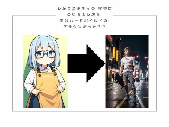★ストーリー 私は不思議だった…いつも行く喫茶店の店長。 取柄と言えばコーヒーがおいしいことだけ。私にとってはうれしい取柄ではあるけど、 わがままボディでゆるふわな感じ。店長はいつも私たちには優しいけど、その店長にはあるうわさが。 そのうわさとはいくつもの暗殺計画を成功させてきた「アサシン」であるということ。 全く私はそのうわさが信じられず、ある日ふらっと歩いていた時出会った店長の後をついていくことに。 そしたらそのうわさの真相を、ついにつかむことに。しかもその姿がとんでもない筋骨隆々のイケメン?? ★シチュエーション 今回はハードボイルドものではありません。 喫茶店に通っている彼女の目線になって、ぜひ筋骨隆々のいい体をしたアサシンを堪能してください。 本作品は、あなた視点のイラストになります。 ★収録内容 ・フルカラー画像データ:393 枚 サイズ:512 × 864px 内訳: 本編:389枚 ★その他 数千枚の中から選定した389枚になります。 ※ 本書はAI(Stable Diffusion)によって作成されたイラストをまとめた作品集です。 ※ 使用Model,Loraともに、イラスト集の出版時点で商用利用可能のもののみで作成しています。 ※ AIで生成されたイラストは、実在の人物・キャラクターに類似している場合がありますが、一切関係がありません。 ※ 登場人物は全てモデルの存在しない架空の人物であり、全て18歳以上の成人として作成しております。 ※ 作品内にあからさまな性器の描写や不自然な部位が含まれる場合は該当箇所にぼかし処理をしています。 ※ 顔や胸の見栄えを優先している為、指などの細かい部分や男性の体などに、生成AI特有の乱れがみられる場合がございますが、ご容赦ください。 ※ 可能な限り手動修正は行っておりますが細部に破綻や不自然さが含まれる場合があります。 画質や質感に若干のブレが生じている場合もあります。 購入前に、そのことをご理解頂き、同意した上で購入を検討していただくことをお願いいたします。 ※ 購入後の取り扱いに不備があった場合こちらは一切責任を負いません。 ※ 本作品の商用目的での利用、無断でコピー・複製することなど、個人で楽しむ目的以外で利用することを禁止します。 ※ 商品は予告なく販売の中止、価格の変更をすることがあります。予めご了承ください。 ※ 第三者への譲渡・転載等が発見された際には法的処置をとらせていただき、損害賠償請求を致します。