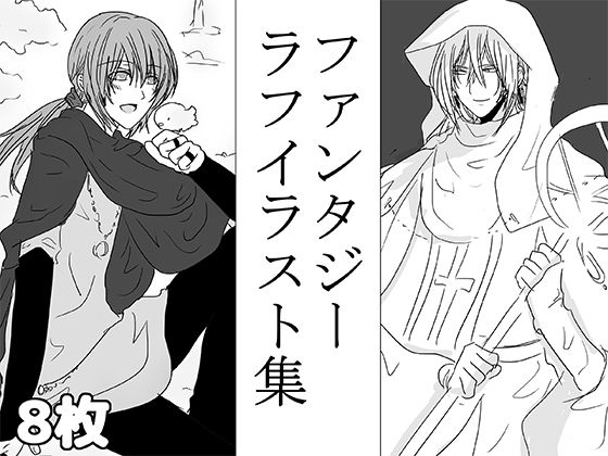 オリジナルの白黒ラフイラスト集です。 ファンタジー/青年キャラ多め 全8枚