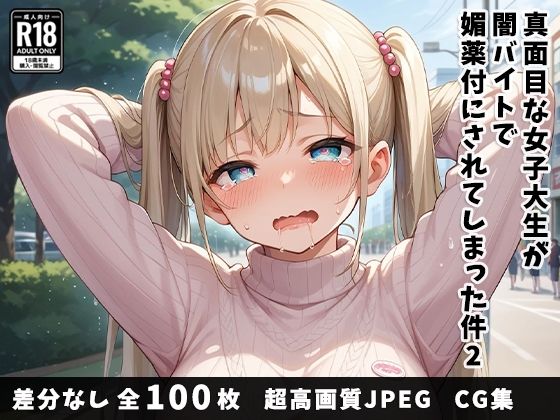 「真面目な女子大生が闇バイトで媚薬付にされてしまった件2」を描いたCG集です。 画像枚数: 画像100枚 画像形式: JPEG ※本作品はStable Diffusionで生成後に加筆修正して作成しました。 ※本作品の登場人物はAI生成のため実在しません。 ※本作品の登場人物は全員18歳以上です。
