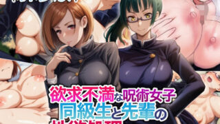 【新彩版】過去に発売した作品の全ページのカラーの塗り直し、また加筆修正をしたものになります。また新規イラスト、シナリオを追加いたしました。呪術廻○女子がエッチしまくり3Pする話です[あらすじ]欲求不満なヒロイン[釘○野薔薇]が同級生男子の部屋のオス臭に興奮していまいこっそりオナニーをする事にハマってしまう。しかし、ついにオナニーしていた事が主人公にバレてしまい、さらにエッチな展開に発展していく…!主人公の身体能力に長けた性技に骨抜きにされた野○薇。野○薇の提案で恋人がいない2人はお互いに性欲処理をする事に…!さらに2人の関係を知った先輩女子[禪○真希]まで参加し、三人全員で性欲処理をする事に!!※「呪術廻○」を知らない方でも楽しめるような構成にしております。ヒロイン 釘○野薔薇 禪○真希【プレイ内容】・虎〇悠仁の部屋でこっそりオナニーをしていた釘〇野薔薇だったが、オナニーしていた事がばれる。・オナニーしていた事の負い目を払拭するために、虎〇悠仁にフェラをする。・虎〇悠仁がフェラのお礼に釘〇野薔薇にクンニをする。・発情した野〇薇とセックス。処女童貞喪失。・野外で誘惑されて立ちバック。・野外で二発目の駅弁。・先輩【禪〇真希】に〇薇との野外セックスを目撃され、同じく欲求不満な真〇にクンニ。・野外で禪〇真希のパイズリ。・興奮した禪〇真希に立ちバック。・虎〇悠仁の部屋で釘〇野薔薇と禪〇真希と乱交フェラ。・虎〇悠仁釘〇野薔薇に顔面騎乗クンニ、禪〇真希に騎乗位.・釘〇野薔薇と禪〇真希に手マンと中出しの好き放題。・三○霞の機械触手プレイ。◆「イラストと文章」で綴るCGノベル◆基本CG14枚◆合計169枚のボリューム