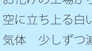 ほのぼの 【d_547259】お化けの工場から空に立ち上る白い気体 少しずつ減っているが 途中で分からなくなる