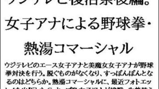 ウジテレビのエース女子アナと美魔女女子アナが野球拳対決を行う。脱ぐものがなくなり、すっぽんぽんとなるのはどちらか。熱湯コマーシャルには、最近フォトエッセイを出版したGカップ乳女子アナが挑戦。制限時間30秒の生着替えでハプニングが発生。あられもない姿を披露し、そのまま熱湯風呂へ入浴することに。熱湯に耐えながら、恥ずかしさにも耐える巨乳女子アナの姿に、男たちは総勃ちとなる。本編:24ページ体験版:5ページ(作品の冒頭5ページをお楽しみいただけます)ノベル作品です。絵はありません。(本文10925文字)※この物語は、体験談風の創作小説です。※実在の人物・団体とは一切関係ありません。※法律・法令に反する行為を容認・推奨するものではありません。