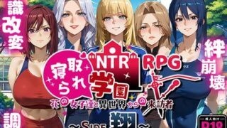 ちまラボ第二弾ADV風RPG 「ミラージュの離反」前作「クリプトの引き裂き」とほぼ同時期に、全く違う場所で全く違う闘いがあった。穏やかな青年が小悪魔でえっちなヒロインに誘惑され夢中になり、彼に忠誠を誓う最強の従者が、醜い雑魚敵に徐々に心を奪われて肉体関係を築いてしまう....「W寝取られ」...こういうゲームがあっても良いのではないでしょうか。カオスでえっちな物語が開幕です。-------------------------------------------------◆◆あらすじ■世界を巻き込んだ、魔王軍率いる魔物サイドと人間サイドが繰り広げた凄惨な戦争からもうすぐ一年が経つ頃。スぺニアという街では王国からの命令による’防衛任務’が行われていた。防衛対象は、’秘宝’と呼ばれる用途不明の謎のアイテム。人間には使い方が分からないものの、魔王にとって喉から手が出る程欲しい代物だという事が判明。優秀な魔法使いの家系として名高いライオネル家の落ちこぼれ「レオ」は、あるケジメのために仲間達と共に防衛に挑む。その任務の最後、残り数週間の出来事。-------------------------------------------------◆◆ゲーム内容■【1】ADV風ファンタジー寝取られ(逆NTR込)モノ防衛任務の舞台となる’屋敷’内を巡りながら、物語を体験します。その中で後述システムによって、主人公やヒロインの心情変化が可視化されます...その移り変わりを楽しむゲームです。主人公はレオとなっていますが、各パートで交代するケースも。■【2】全8エピソード構成それぞれのパートで細かな目的は変わりますが行動理念はただ一つ。’秘宝’を守る事。そしてメンバーの中には、レオを昔からお世話している最強の褐色従者ヒロインであるルナもいます。特に彼女を思いやりながら防衛任務を過ごしてください。ただ......この防衛戦線には既に魔物サイドからの’2人のスケベな手先’が忍び込んでいます。敵の目的は勿論、’秘宝’を強奪する事。あの手この手で言い寄り骨抜きにしようと画策するのですが、選択肢や行動でこの誘惑に乗り続けていると明かしてはいけない任務の情報が漏洩しヒロインとの信頼関係にも徐々に亀裂が。敵はレオが漏らした情報を頼りに、更に’秘宝’の真相に近づいてきます。その裏でルナは少しずつ敵と’接触’する時間を増やしていく事に...。トゥルーエンドに辿り着くためには意志を強く持つ事です。結果的にヒロインを奪われないよう、アナタが悪女に攻略されないように立ち回らないといけません。..........でも安心してください。アナタの従者は最強です。彼女を信じて最後まで過ごせば全てが上手くいくでしょう。※ENDは複数存在しますが簡単に選べるようにします。**収録END**1.両寝取られEND1(W寝取られと称しております)2.両寝取られEND2(W寝取られと称しております)3.ヒロインのみ寝取られEND4.真END※ゲームオーバーは存在しません。-------------------------------------------------◆◆システムについて・状況を進めるとメニュー画面から閲覧可能な「2人の心」が変化します。これは主人公やヒロインが今何を思っているかが可視化されたシステムです。・色々調べるごとに左下のログでキャラの動向や台詞が表示されます。今回は更に具体的な環境の情報も!・誘惑に負けてしまう(強●イベント有)事でスキル欄にエッチな記録が追加されて行ってしまう。・「辞典」で様々な情報を閲覧可能。逐一確認して色々妄想を捗らせてください。-------------------------------------------------◆◆備考本ソフトはRPGツクールMVで制作しております。※今作はちまラボ第一弾ADV風RPG「クリプトの引き裂き」と関連性が強い作品です。