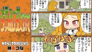 ほのぼの 【d_536826】メデューサちゃんファミレスへいく 20P、オリジナル4コマまんが本です。魔物の村に突然現れたニンゲンが経営するレストラン、そこは二郎とサイゼが悪魔合体した激安爆盛イタリアンレストランだった。度を越したハイカロリーなごはんがメデューサちゃん達を襲う! 2025.02.26 ほのぼのギャグ・コメディ人外娘・モンスター娘全年齢向け男性向け萌え